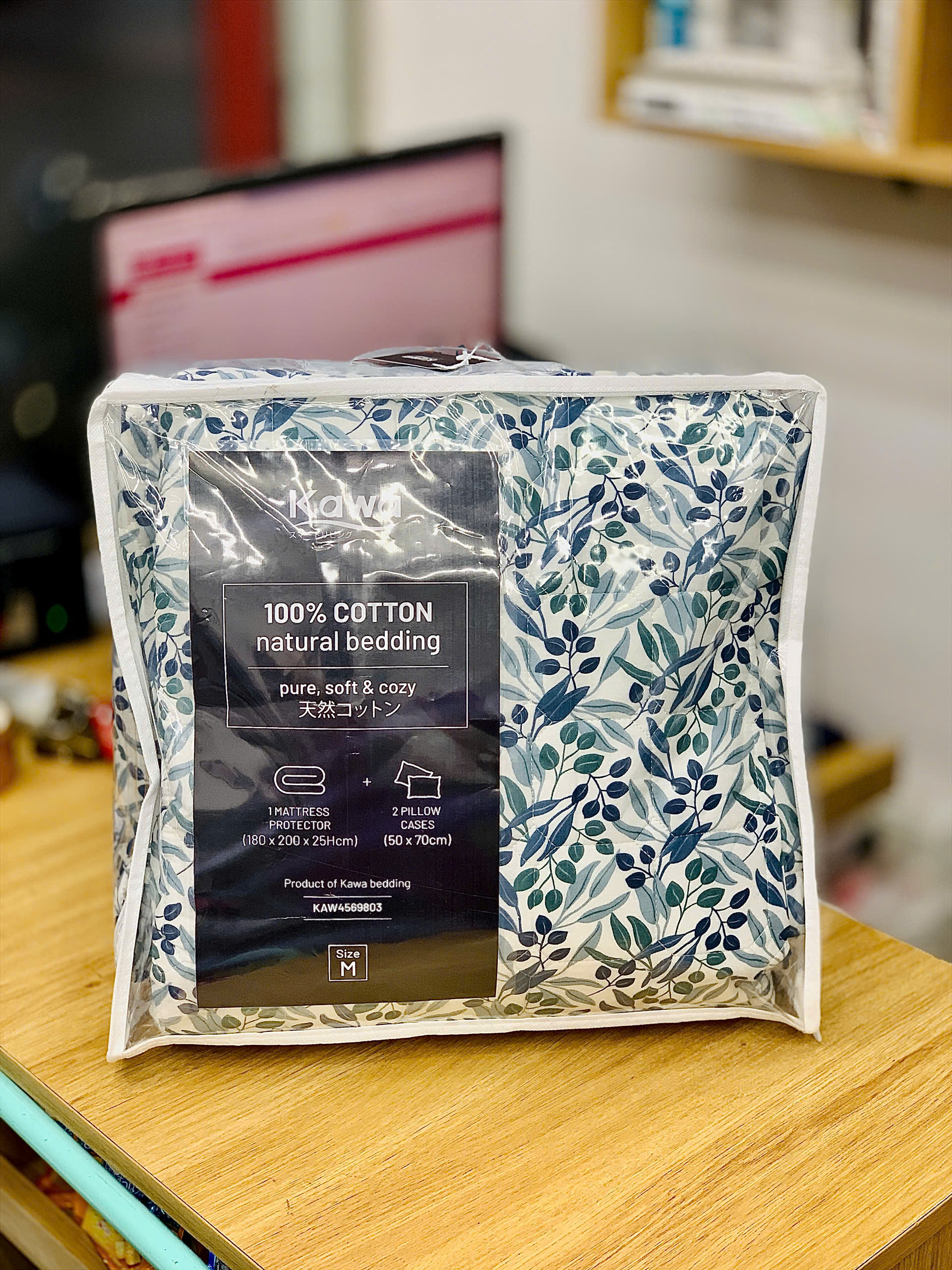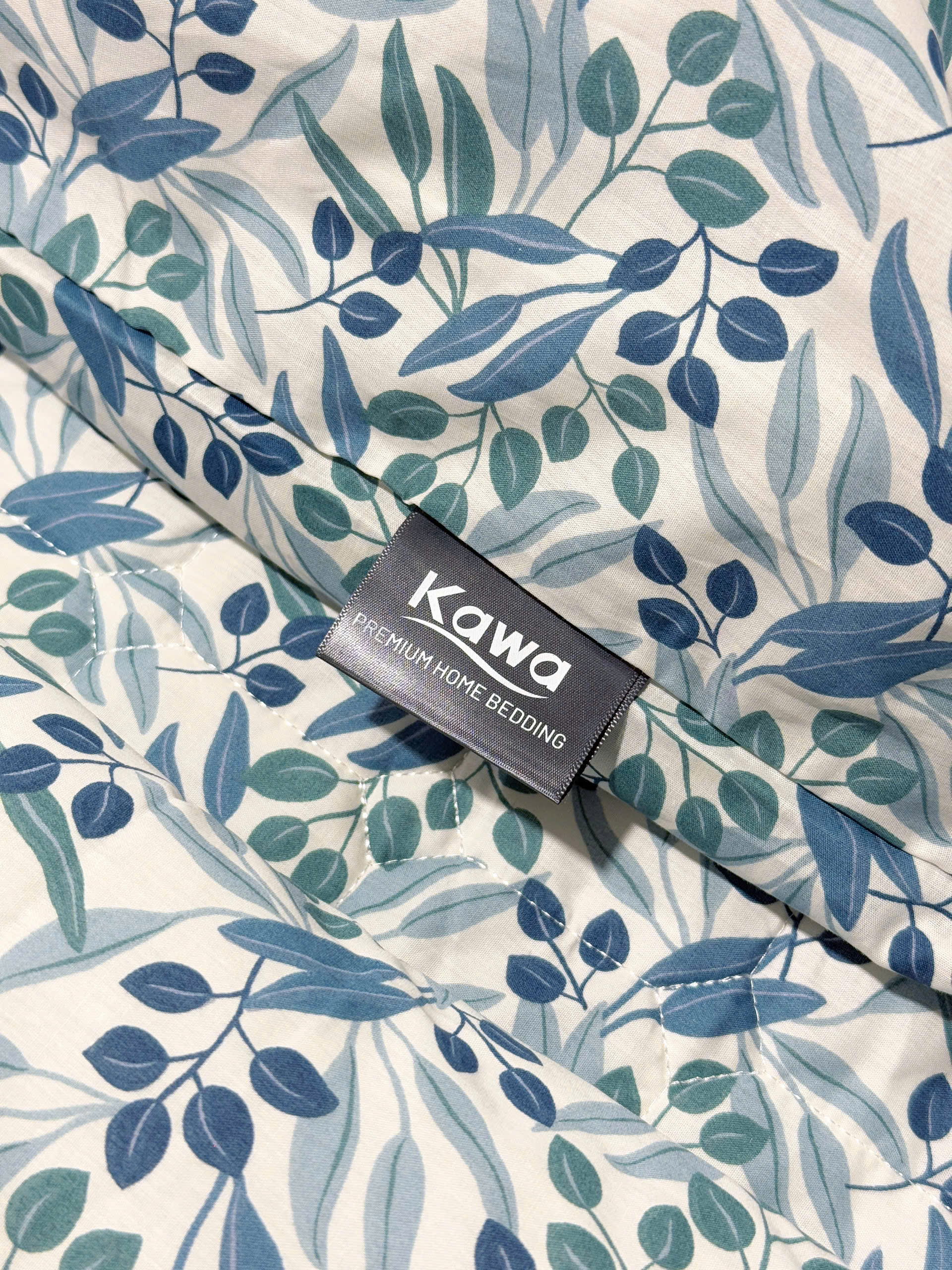 Bộ ga cottton trần bông kèm 2 vỏ gối Kawa size 1,8-2m - mẫu lá xanh
