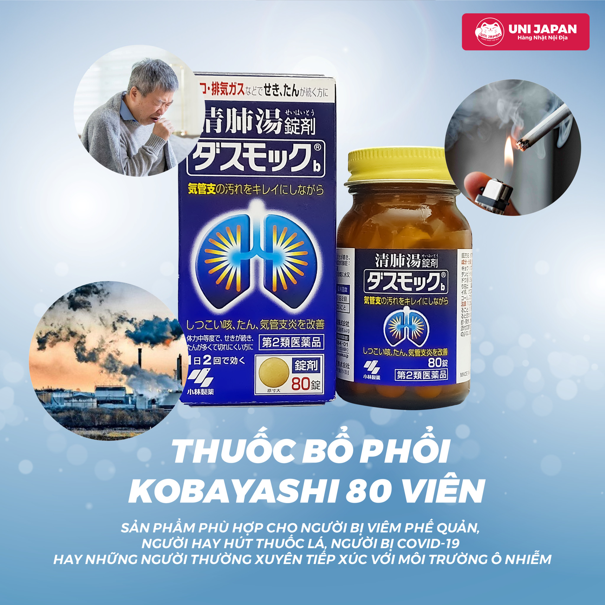 Thuốc bổ phổi Kobayashi hộp 80 viên chiết xuất 16 loại thảo dược thiên nhiên, giúp thanh lọc phổi, giảm ho khan, khó th,... Sản phẩm của Nhật Bản được ưa chuộng trên thị trường.