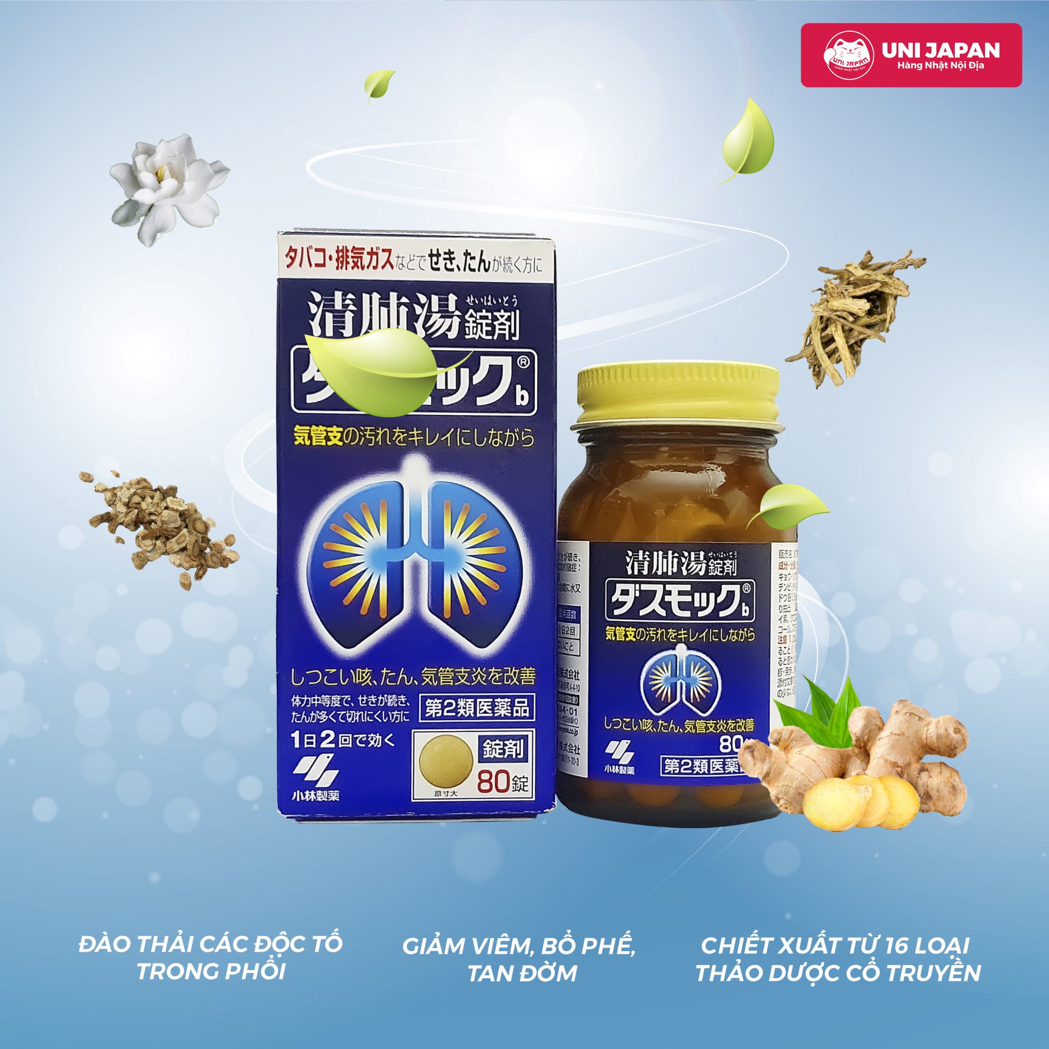 • Thuốc bổ phổi của Nhật Kobayashi chiết xuất 16 loại thảo dược, giúp loại bỏ chất cặn bã, độc tố tích tụ trong màng phổi, thanh lọc phổi