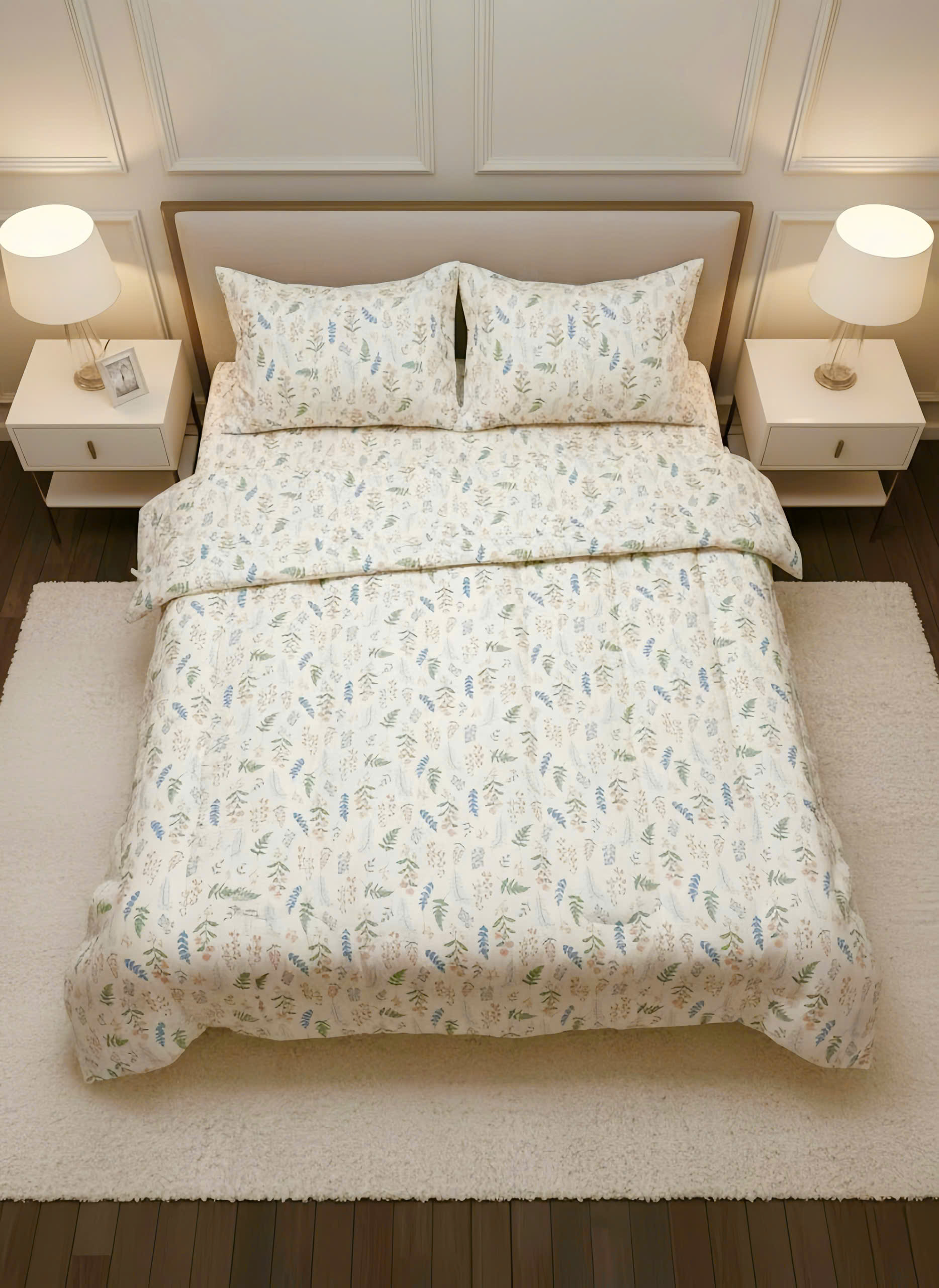 Bộ ga cottton trần bông kèm 2 vỏ gối Kawa size 1,8-2m - mẫu hoa