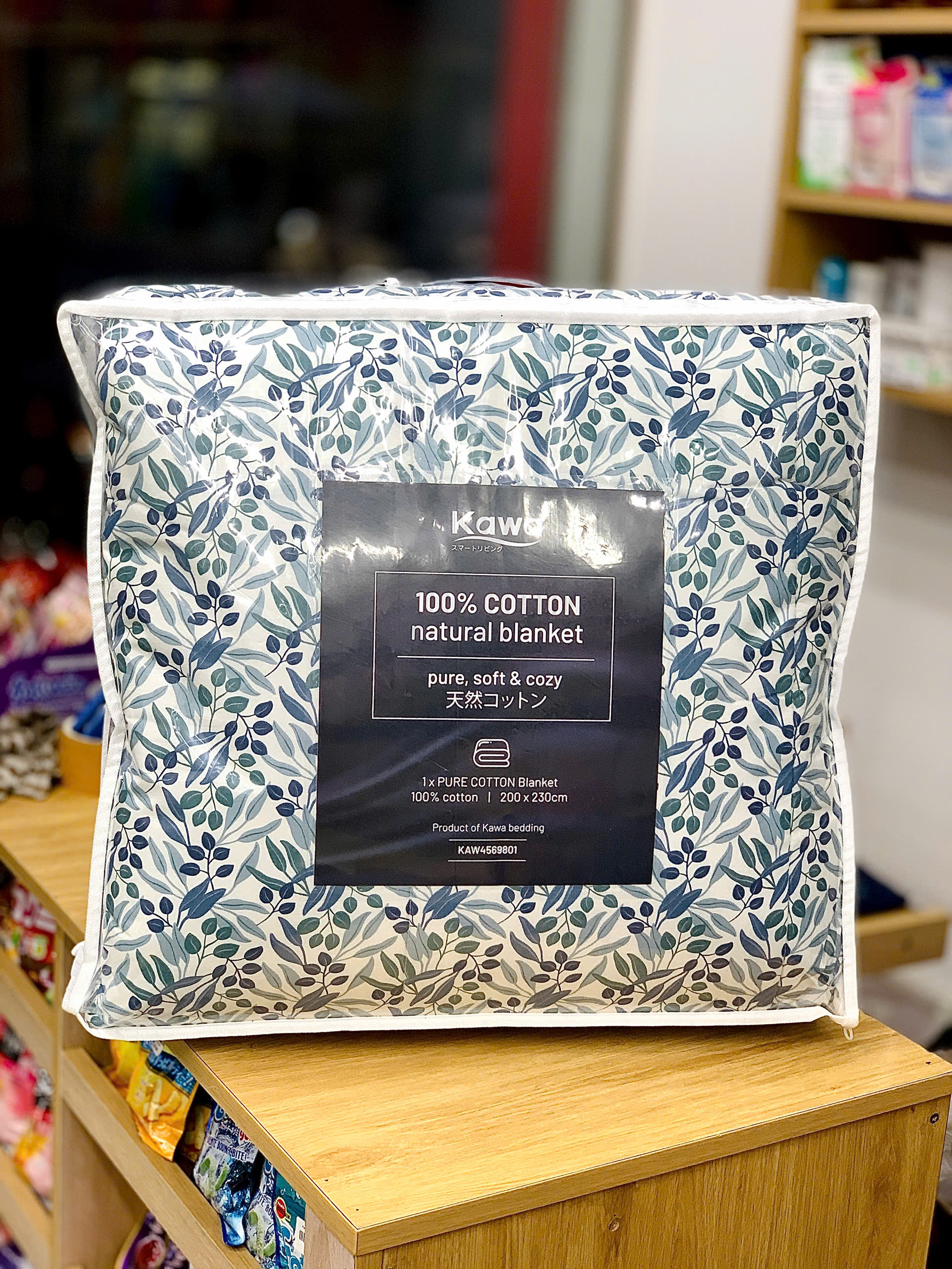 Chăn bông trần lông đại hàn Kawa size 200*230cm - mẫu lá xanh