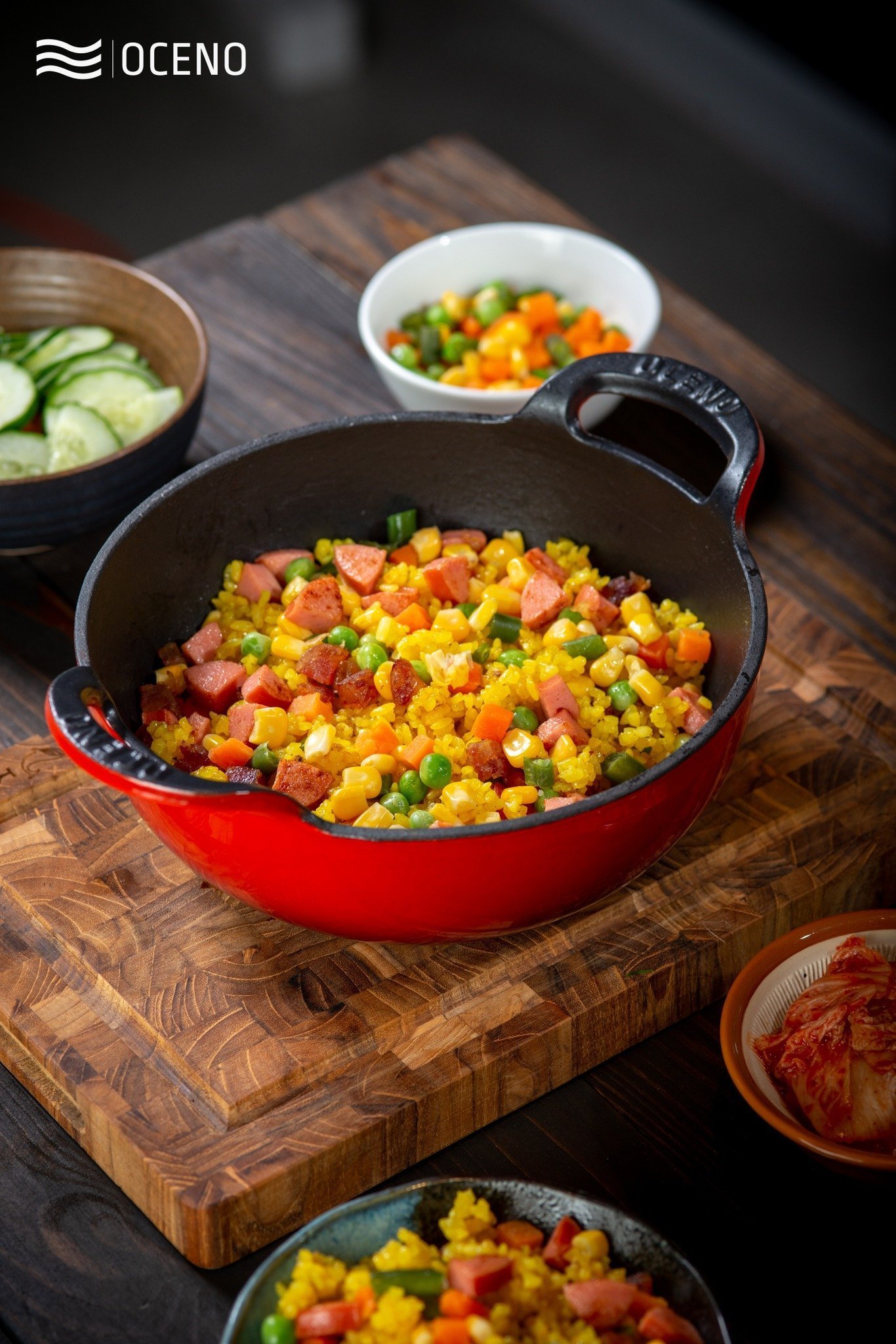 Chảo gang Oceno sâu lòng màu đỏ 20cm