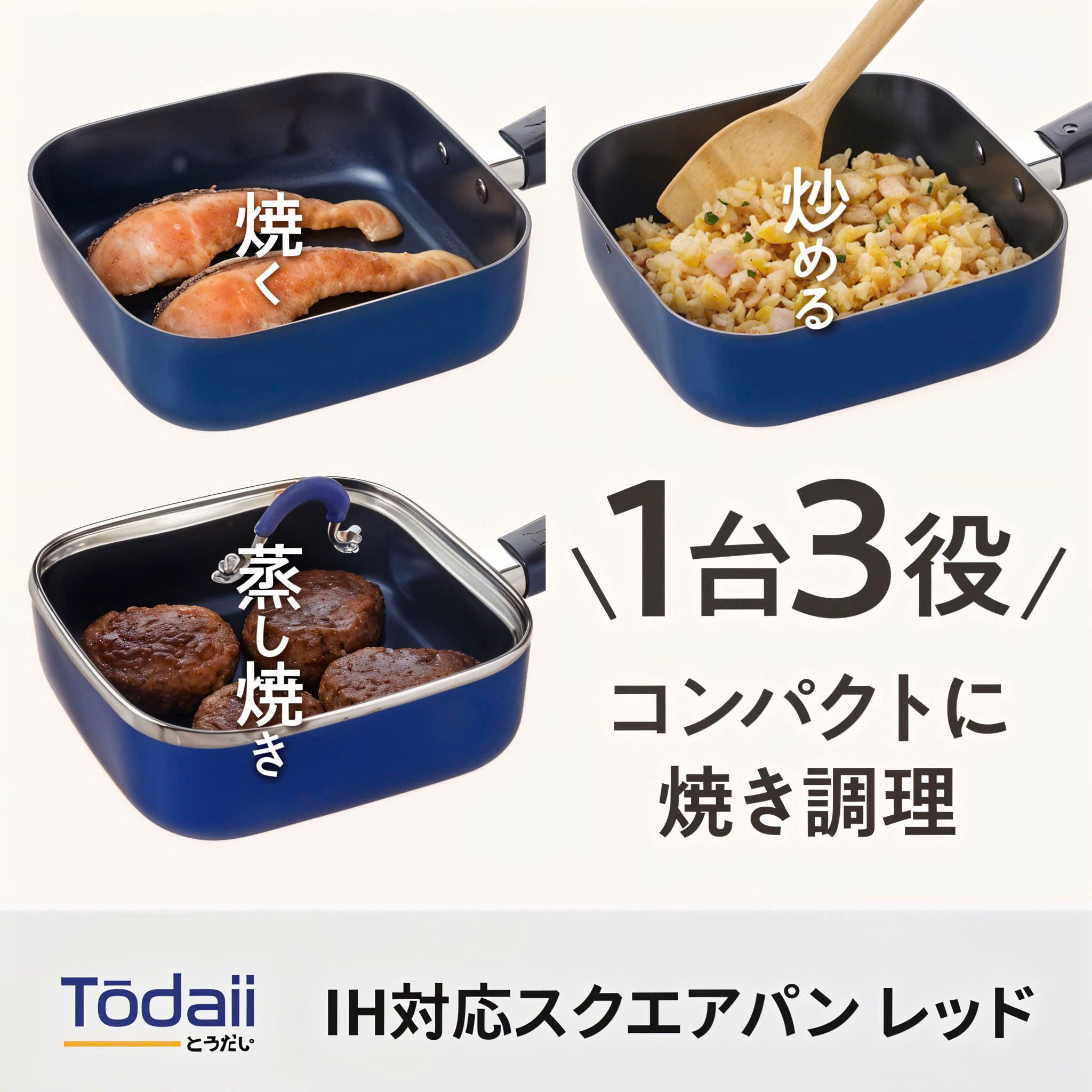Chảo vuông chống dính có nắp kính Todaii size 18cm màu đỏ