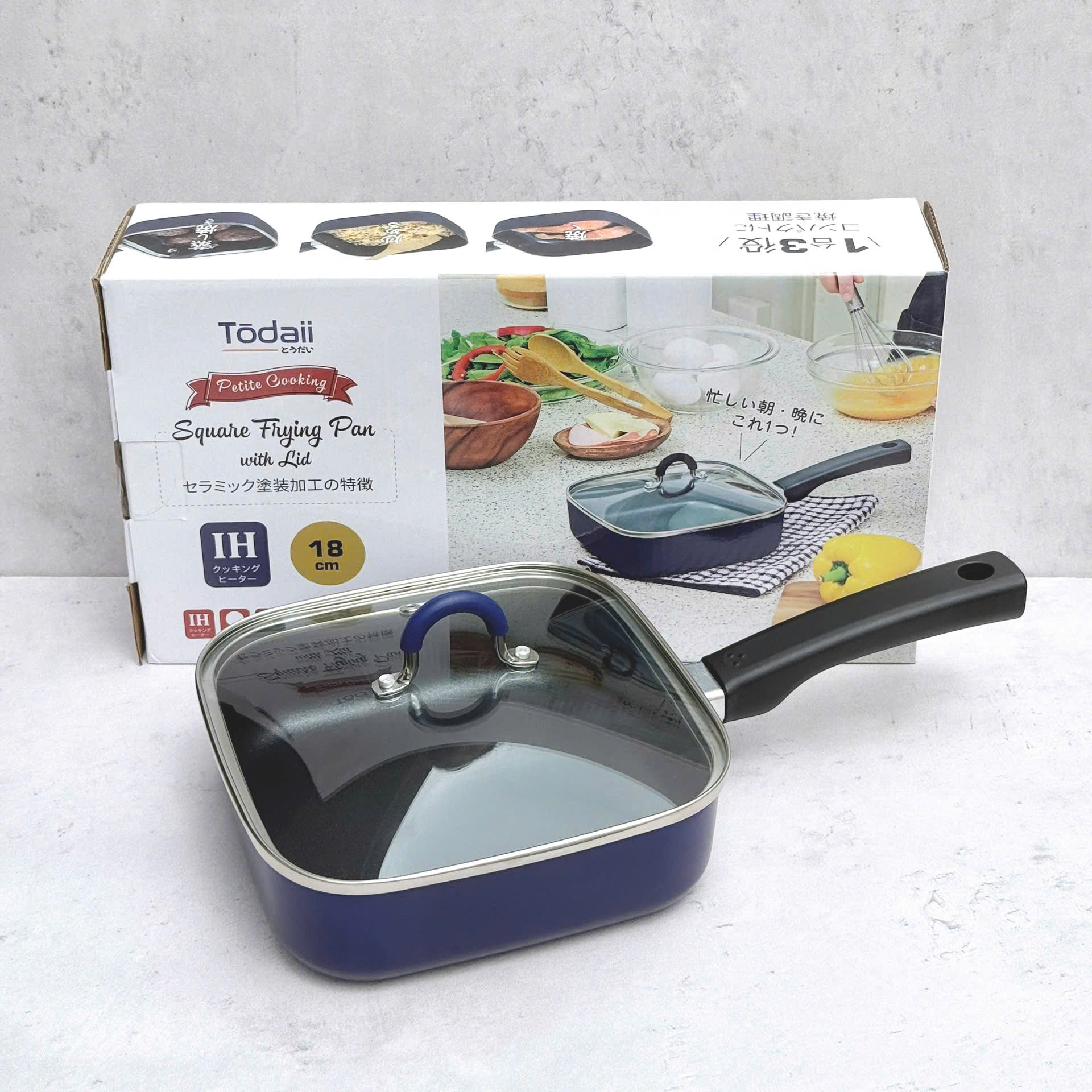Chảo vuông chống dính có nắp kính Todaii size 18cm màu xanh