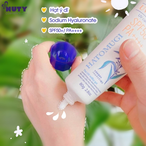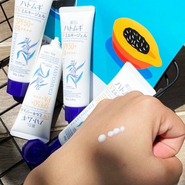 Kem Chống Nắng Dưỡng Ẩm, Dưỡng Trắng Da, Dành Cho Mặt Và Toàn Thân Hatomugi UV Care & Moisturizing Milky Gel SPF50+/PA++++ là dòng kem chống nắng thuộc thương hiệu Hatomugi đến từ Nhật Bản. Với chỉ số chống nắng SPF50+/PA++++ giúp bảo vệ da hoàn hảo trước tác động của tia cực tím có trong ánh nắng mặt trời, kết hợp với thành phần chiết xuất hạt ý dĩ an toàn dịu nhẹ với làn da.