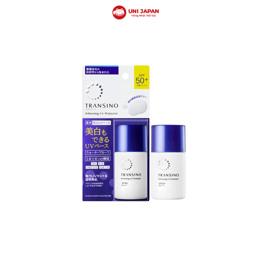 - Kem chống nắng Transino Whitening UV Protector 30ml là dòng sản phẩm chống nắng dành riêng cho da nám, tàn nhang của Công ty dược phẩm Daiichi Sankyo Nhật Bản nghiên cứu và sản xuất.