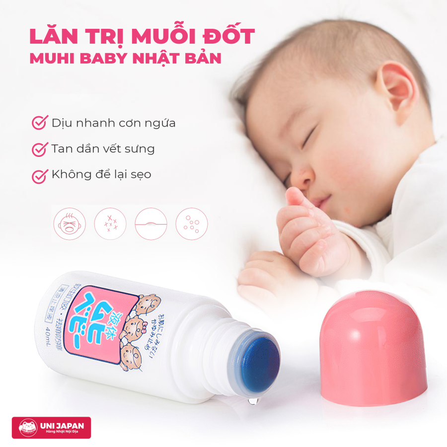 - Khi muỗi hoặc côn trùng đốt bé, các mẹ dùng muhi lăn luôn vào những vết cắn đó, đừng để thời gian muỗi hoặc côn trùng đốt trẻ quá lâu vì khi đó các vết cắn sẽ sưng đỏ làm bé khó chịu.