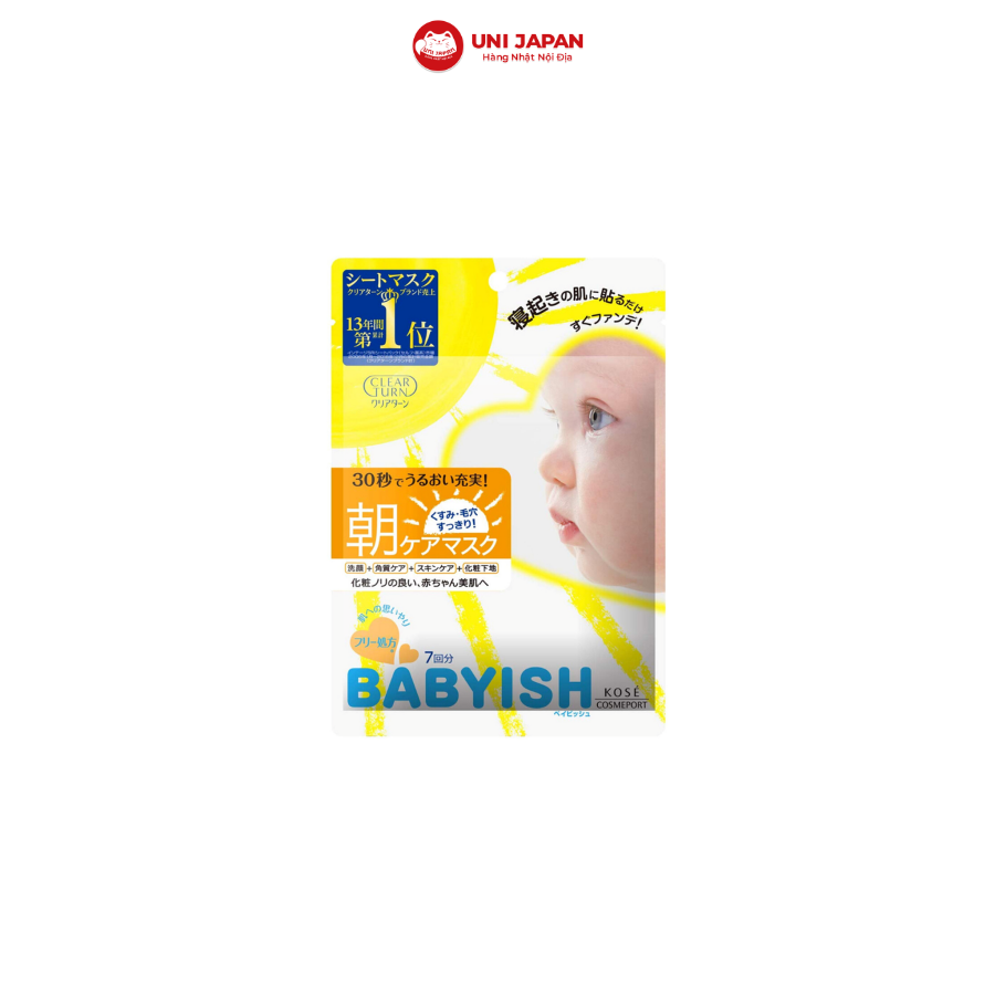 Mặt nạ Kose Babyish làm se khít lỗ chân lông, dưỡng ẩm tự nhiên, chống lão hóa và làm trắng da mang lại làn da tươi sáng, mịn màng như làn da em bé.