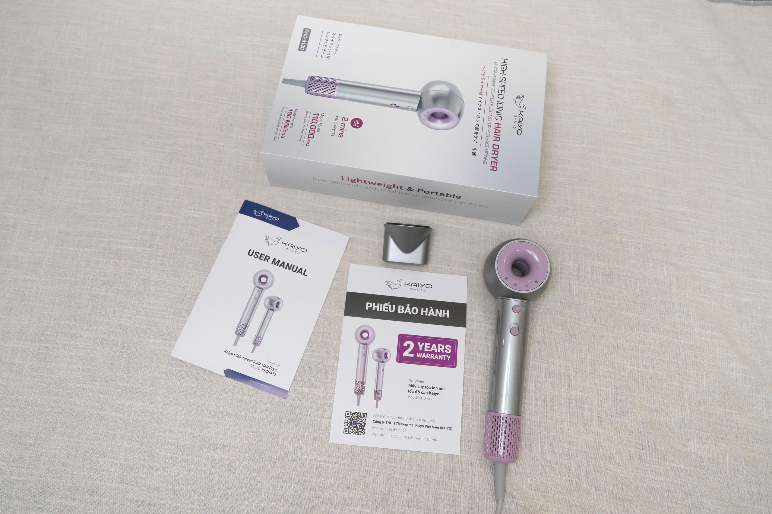 Kaiyo KHD-412 là máy sấy tóc tốc độ cao tích hợp ion âm hiện đại, giúp sấy khô nhanh, tạo kiểu dễ dàng mà vẫn giữ được độ ẩm và sự mềm mượt tự nhiên của tóc. Thiết bị sử dụng động cơ không chổi than tốc độ cao (110.000 vòng/phút), rút ngắn thời gian sấy chỉ còn khoảng 2 phút, thích hợp cho người bận rộn nhưng vẫn muốn chăm tóc mỗi ngày.