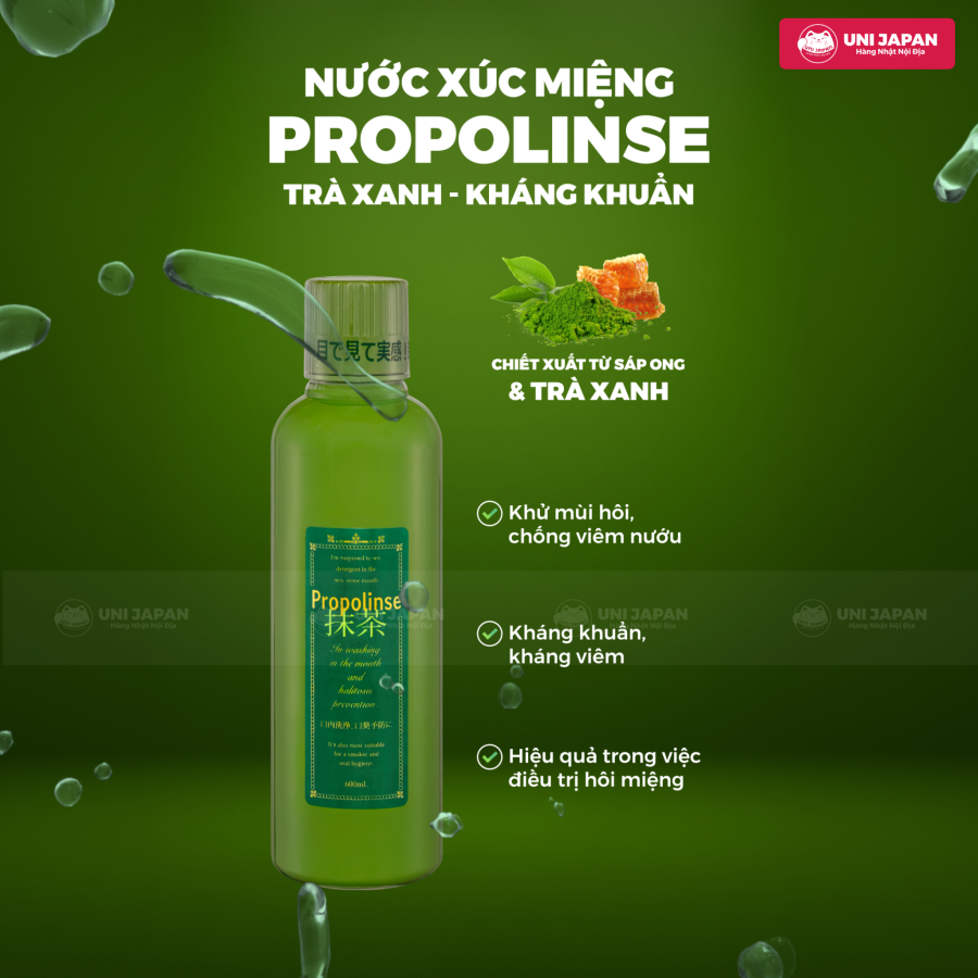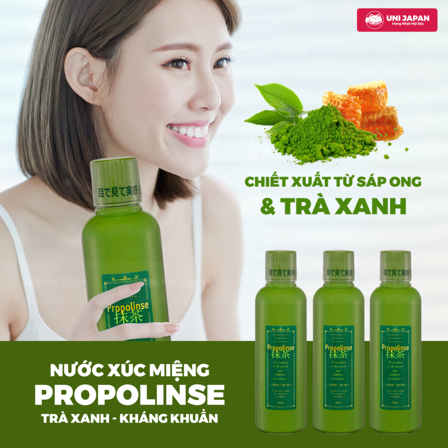 Nước Súc Miệng Propolinse Trà Xanh giúp bổ sung tinh chất trà xanh giúp làm sạch các mảng bám trên răng, chống oxy hóa, chống hôi miệng, làm sạch răng miệng hàng ngày