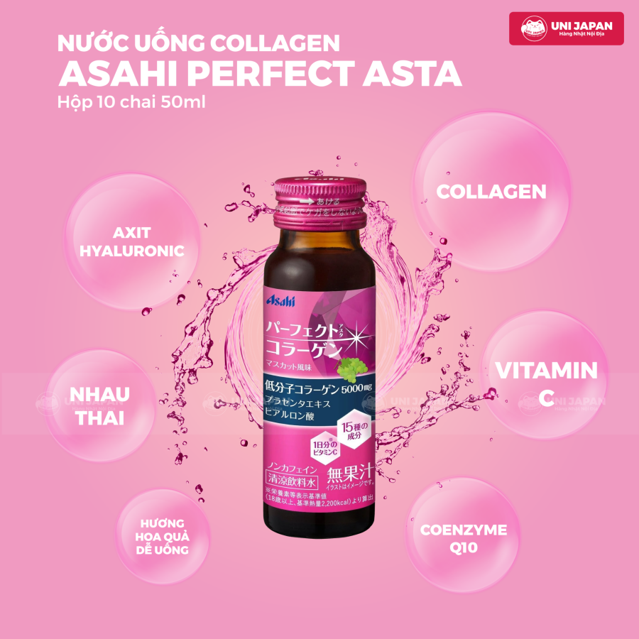 1. THÔNG TIN SẢN PHẨM: Nước uống collagen Asahi Perfect Asta màu hồng ( dưới 35 tuổi) hộp 10 chai x 50ml