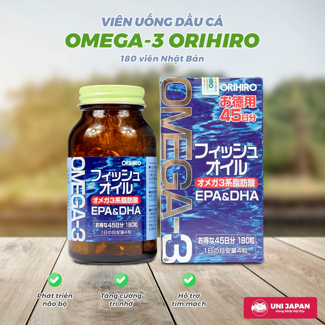 Dầu Cá Omega 3, EPA & DHA Orihiro 180 Viên của Nhật Bản hỗ trợ cải thiện trí não, chất xám, điều hòa tuần hoàn máu và cải thiện điểm vàng trong mắt...
