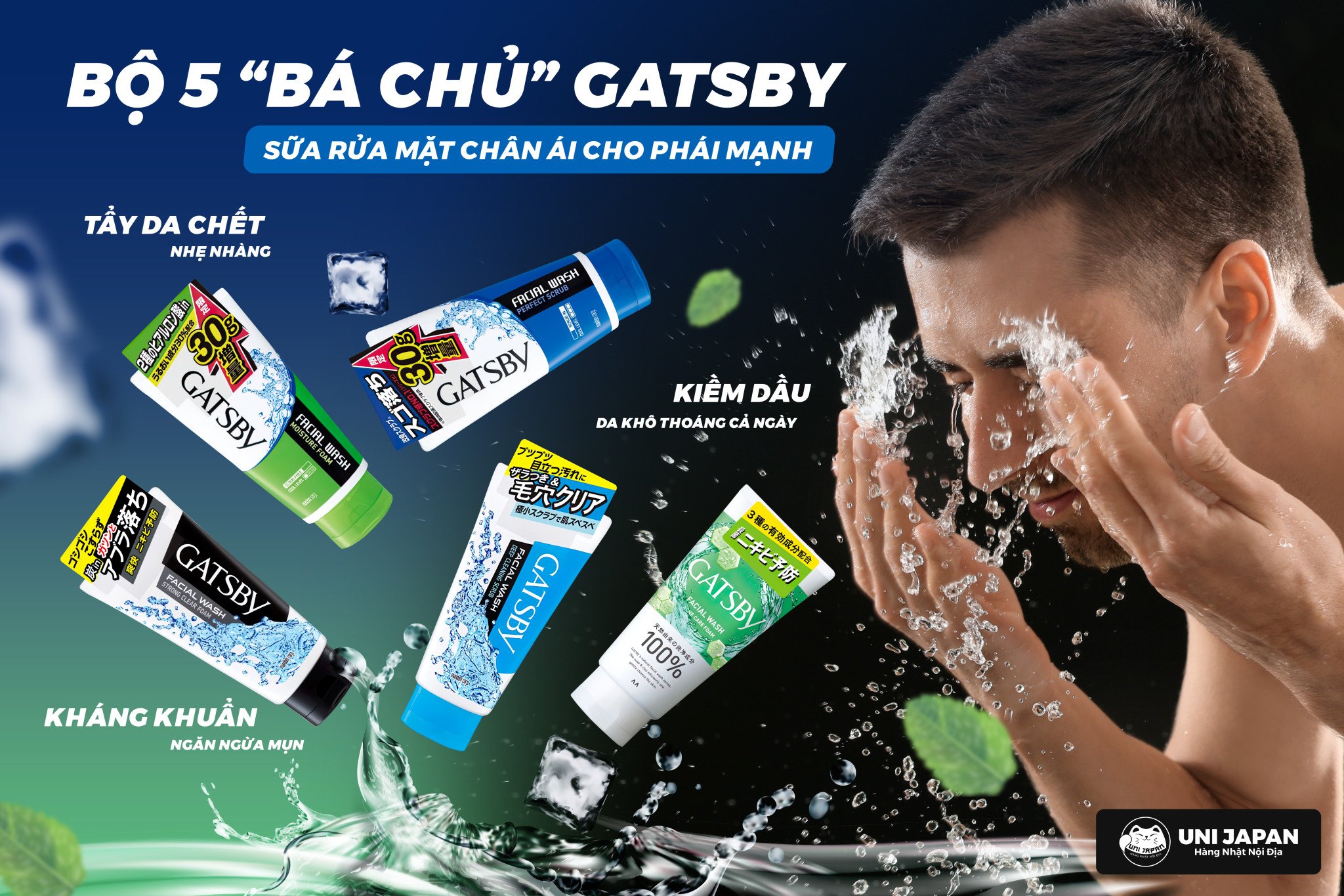 Sữa Rửa Mặt GATSBY Facial Wash là dòng sản phẩm sữa rửa mặt thuộc thương hiệu mỹ phẩm dành cho nam Gatsby đến từ Nhật Bản. Được thiết kế chuyên biệt cho làn da nam giới, sản phẩm có khả năng làm sạch tận sâu lỗ chân lông và loại bỏ bụi bẩn, bã nhờn hiệu quả, đồng thời ngăn ngừa tích tụ vi khuẩn gây mụn, mang đến một làn da sạch sẽ thông thoáng, giúp phái mạnh luôn tự tin.