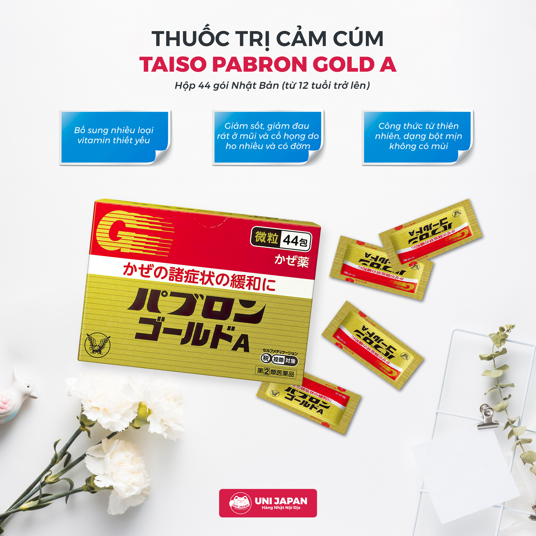 Cảm cúm là căn bệnh phổ biến hiện nay. Sản phẩm TAISHO- Bột hỗ trợ điều trị cảm cúm Pabron Gold A44 gói giúp bạn điều trị dứt điểm căn bệnh cảm cúm, chấm dứt các triệu chứng ho, sốt, đau đầu nhất là thời điểm giao mùa