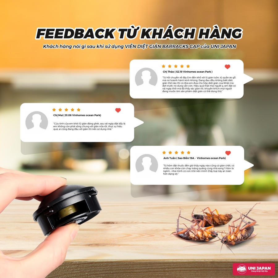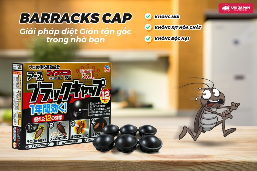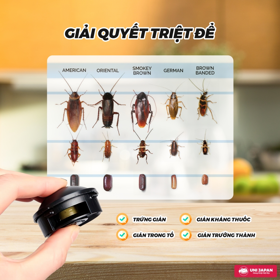 Mỗi viên diệt gián Nhật Bản được bao bọc bởi hộp nhựa cứng chỉ có gián chui lọt vào lấy thức ăn. An toàn tuyệt đối vs trẻ con và thú cưng.