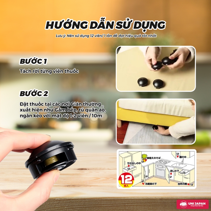 - Ở những nơi gián sinh sôi nhiều nên đặt 2 viên/ 5m² quanh khu vực bạn không muốn gián lại gần.