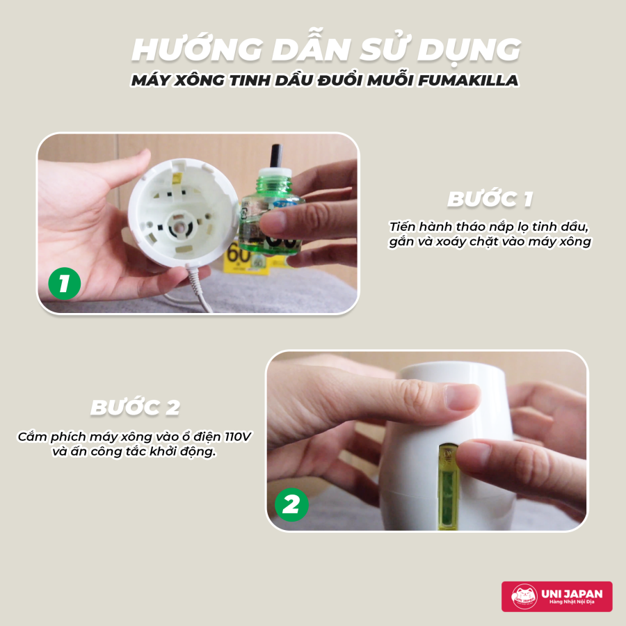 - Bước 1: Tiến hành tháo nắp lọ tinh dầu và gắn, xoáy chặt vào máy xông.