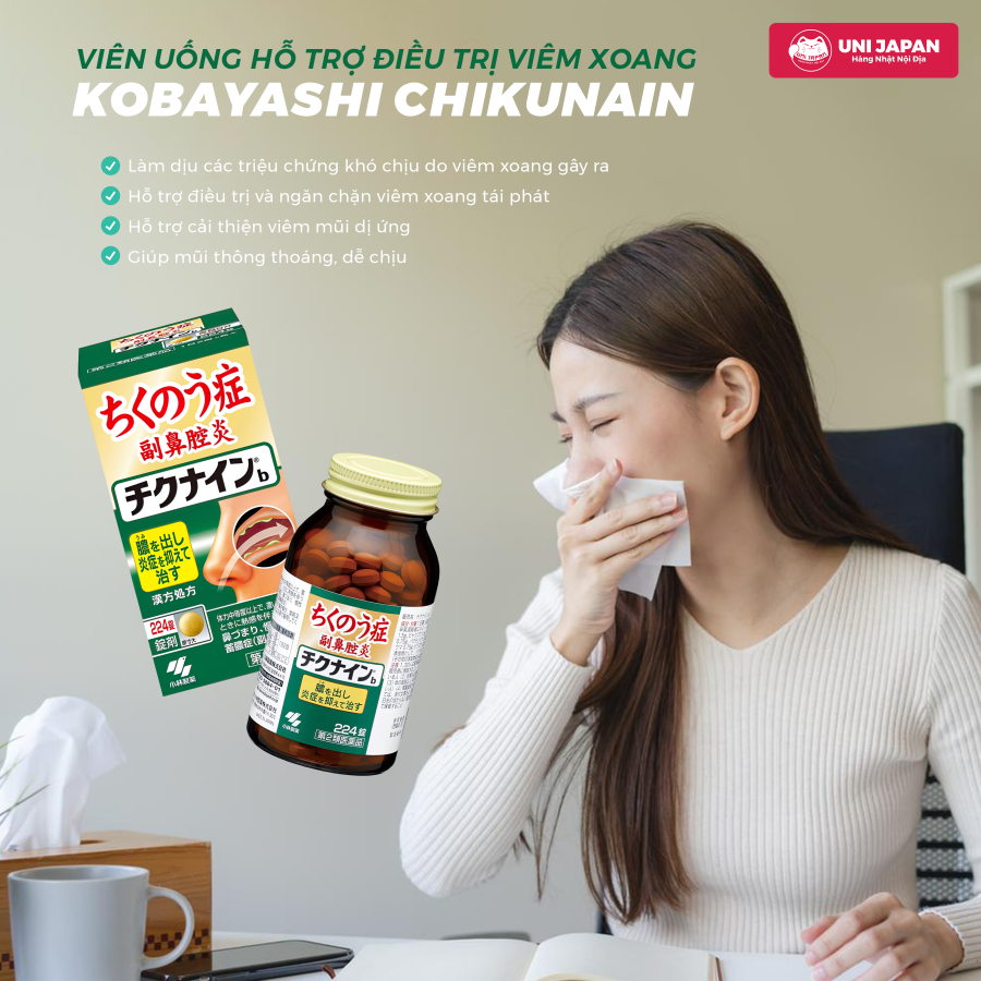 1. THÔNG TIN SẢN PHẨM: Viên uống hỗ trợ điều trị viêm xoang Kobayashi Chikunain 224 viên