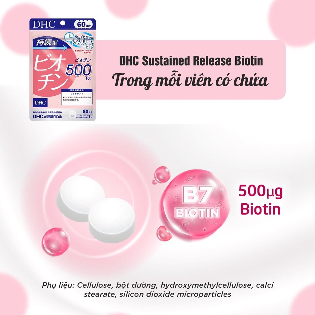 Viên uống hỗ trợ ngăn rụng tóc DHC Sustained Release Biotin (Gói 60 viên) bổ sung biotin, cung cấp các dưỡng chất cho da và tóc, giúp mái tóc luôn suông mượt, chắc khỏe và làn da luôn rạng ngời.