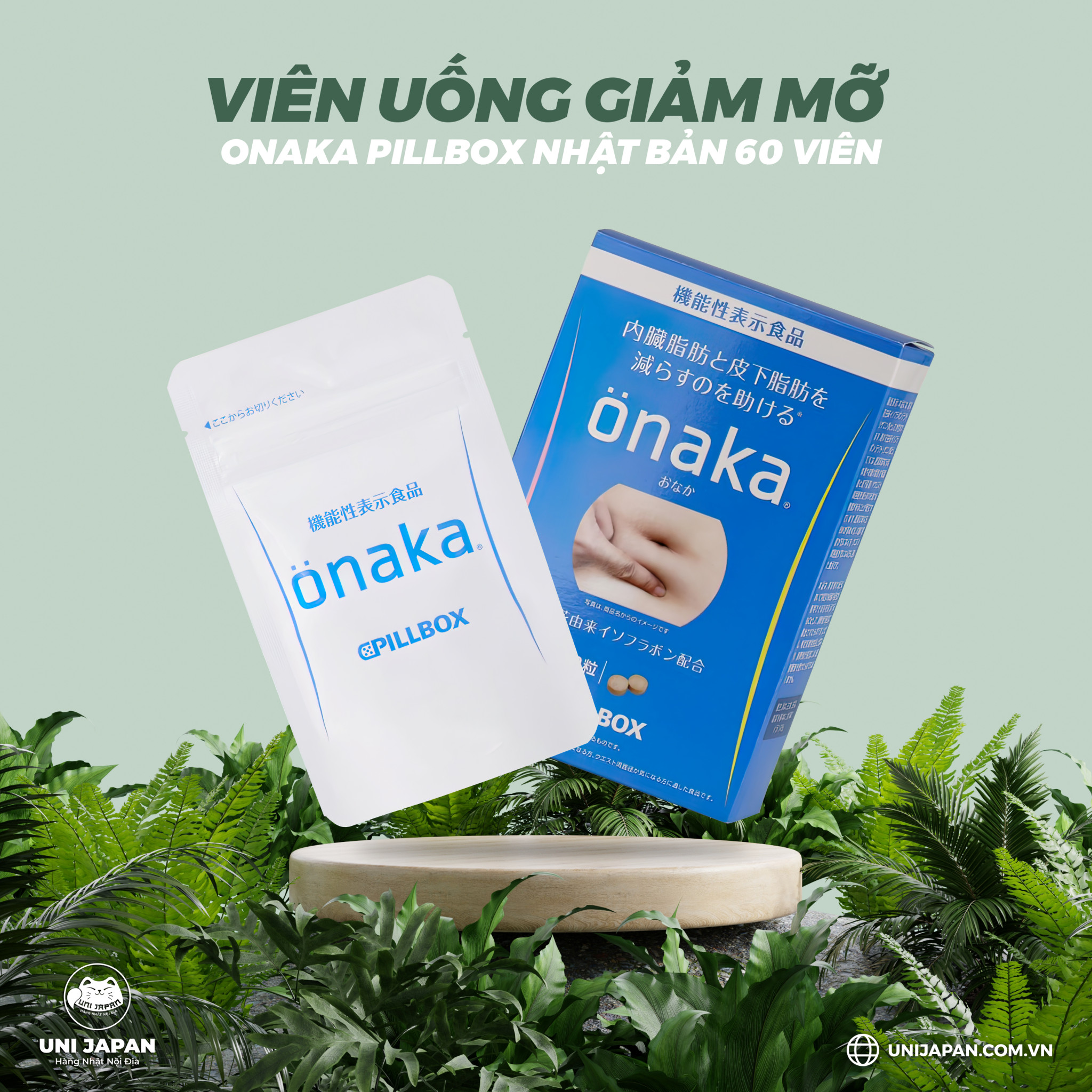 1. THÔNG TIN SẢN PHẨM: Viên Uống Giảm Mỡ Bụng Onaka Pillbox Nhật Bản 60 viên