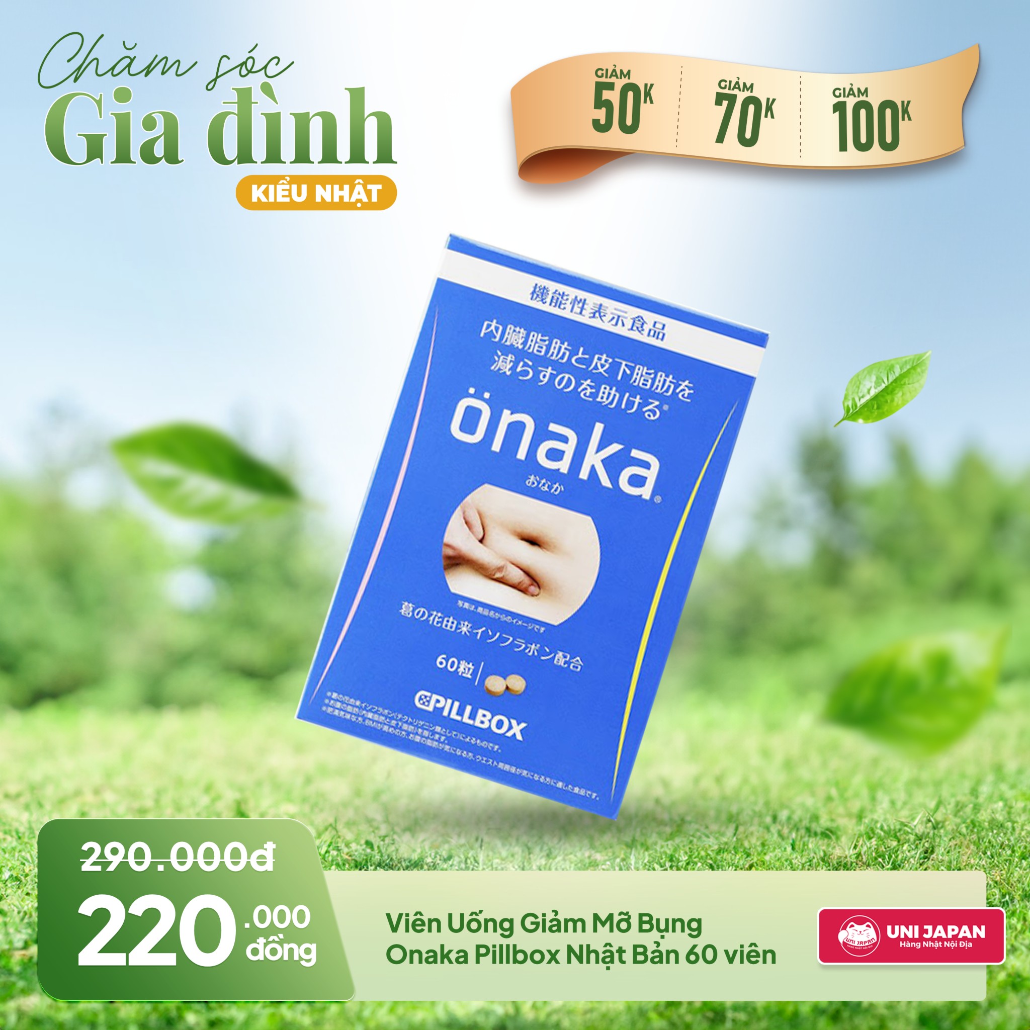 1. THÔNG TIN SẢN PHẨM: Viên Uống Giảm Mỡ Bụng Onaka Pillbox Nhật Bản 60 viên